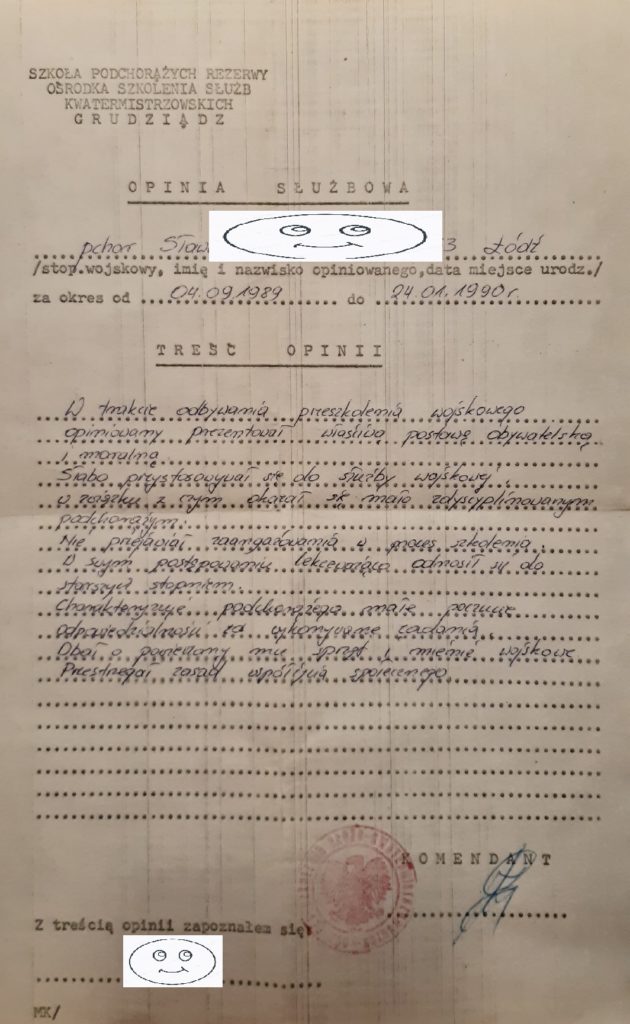 W trakcie odbywania przeszkolenia wojskowego opiniowany prezentował właściwą postawę obywatelską i moralną.